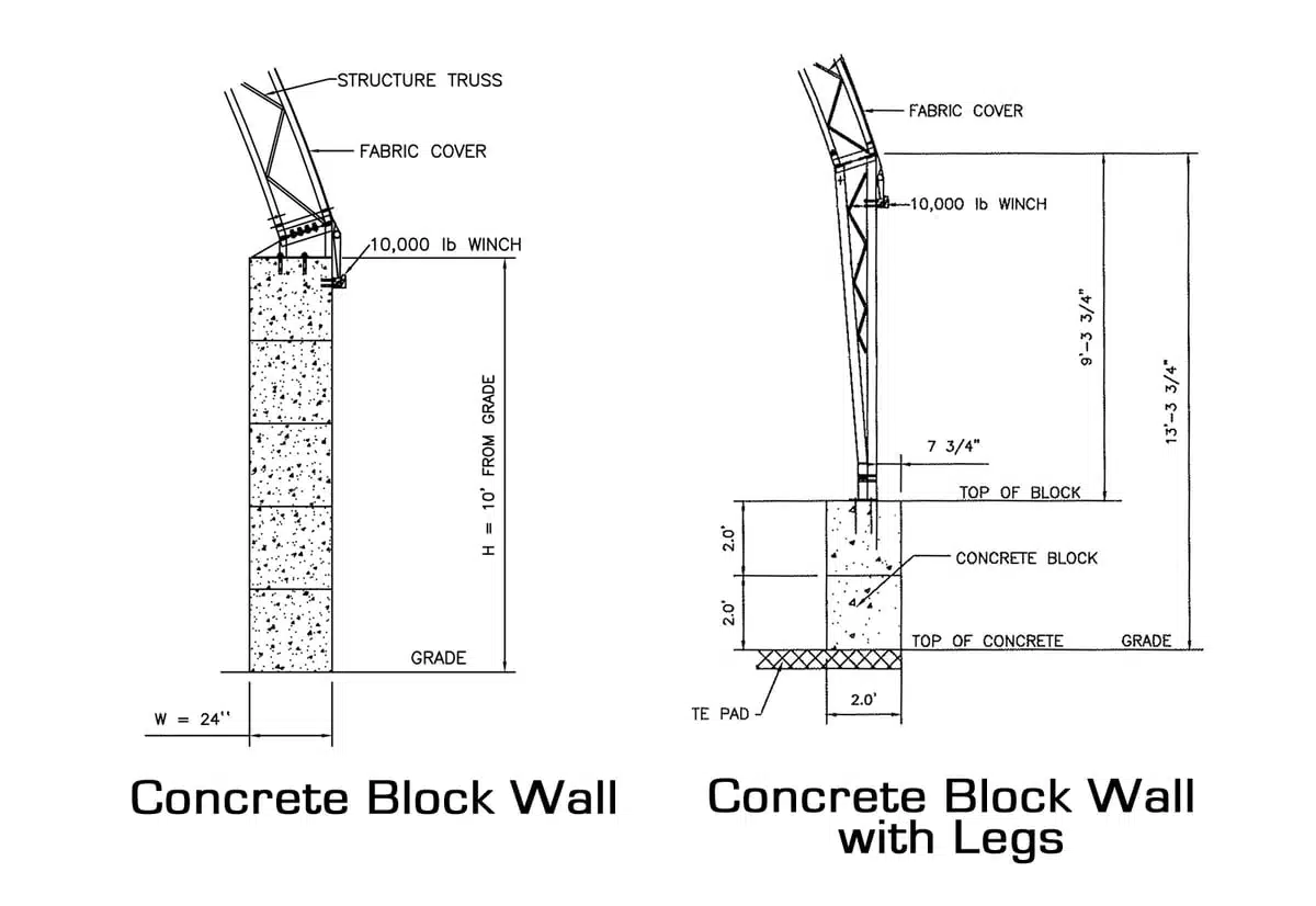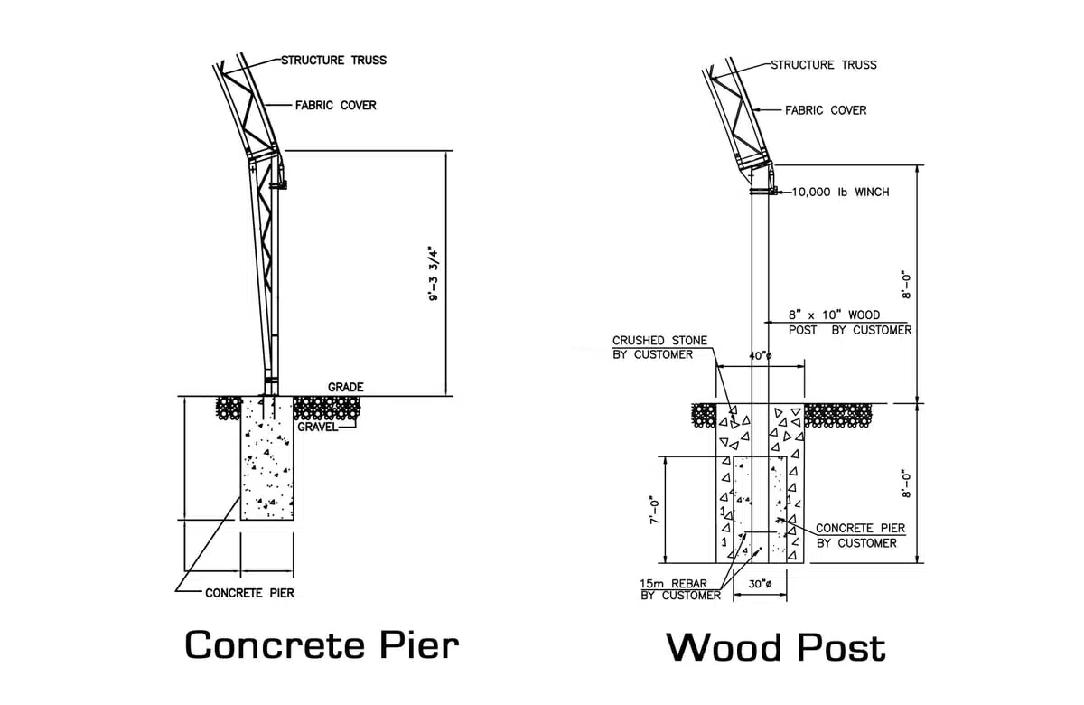 GGS Fabric-Covered Structures can be installed in a variety of ways, depending upon soil type, proximity of bedrock, municipal bylaws, budget, and personal preference. Discuss your options with an Authorized GGS Dealer, or contact us directly. Here are some of the most popular foundation types. Not all can be used in every area or for every building size; contact us for more information.